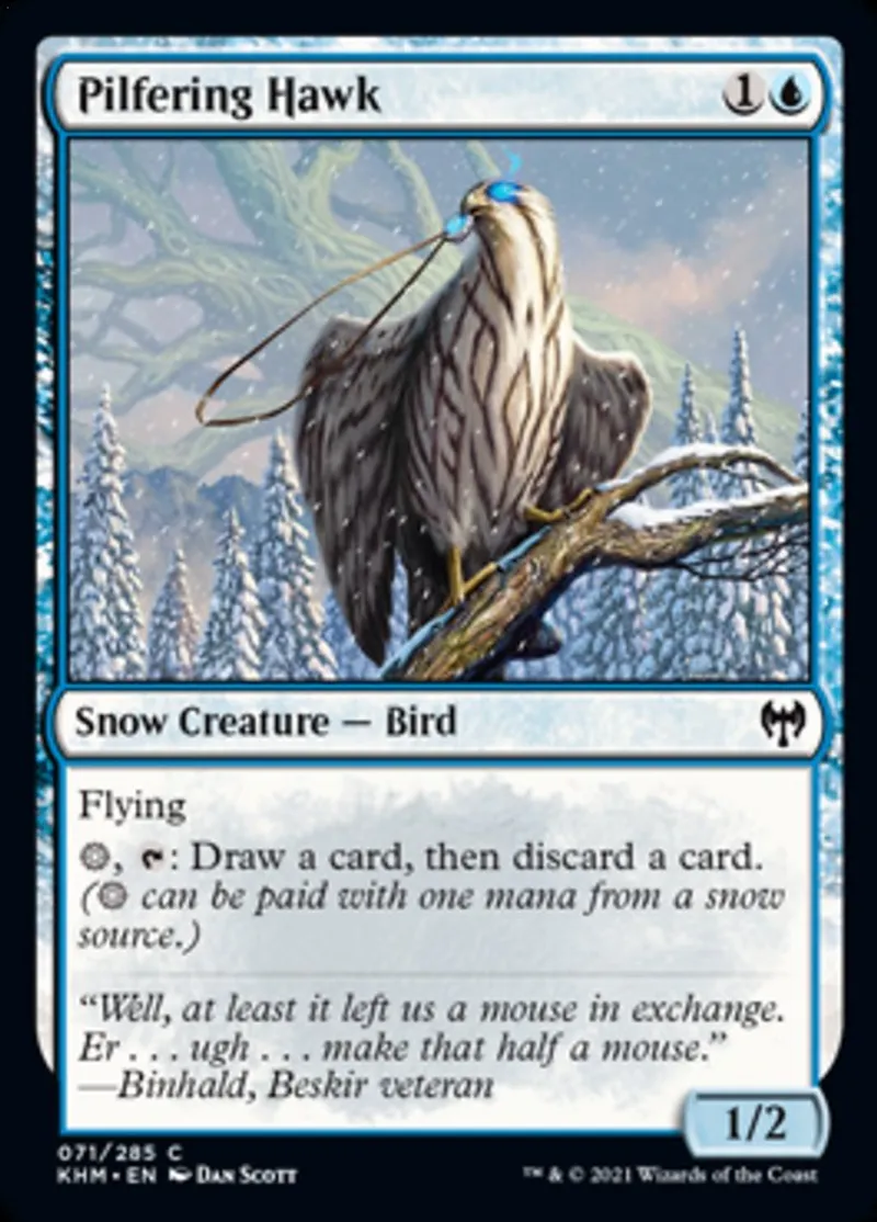Magic: the Gathering (mtg) common Snow Creature — Bird Pilfering Hawk from Kaldheim (khm) last updated 2026-02-21 16:32:33