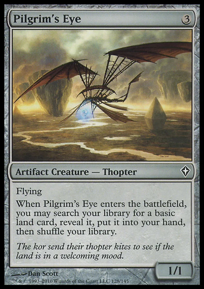 | Oracle Text | Flying When Pilgrim's Eye enters the battlefield, you may search your library for a basic land card, reveal it, put it into your hand, then shuffle your library. | ||