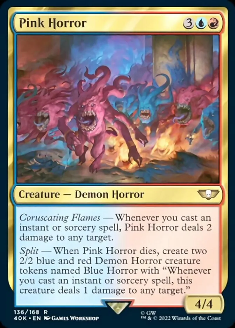 | Oracle Text | Coruscating Flames — Whenever you cast an instant or sorcery spell, Pink Horror deals 2 damage to any target.