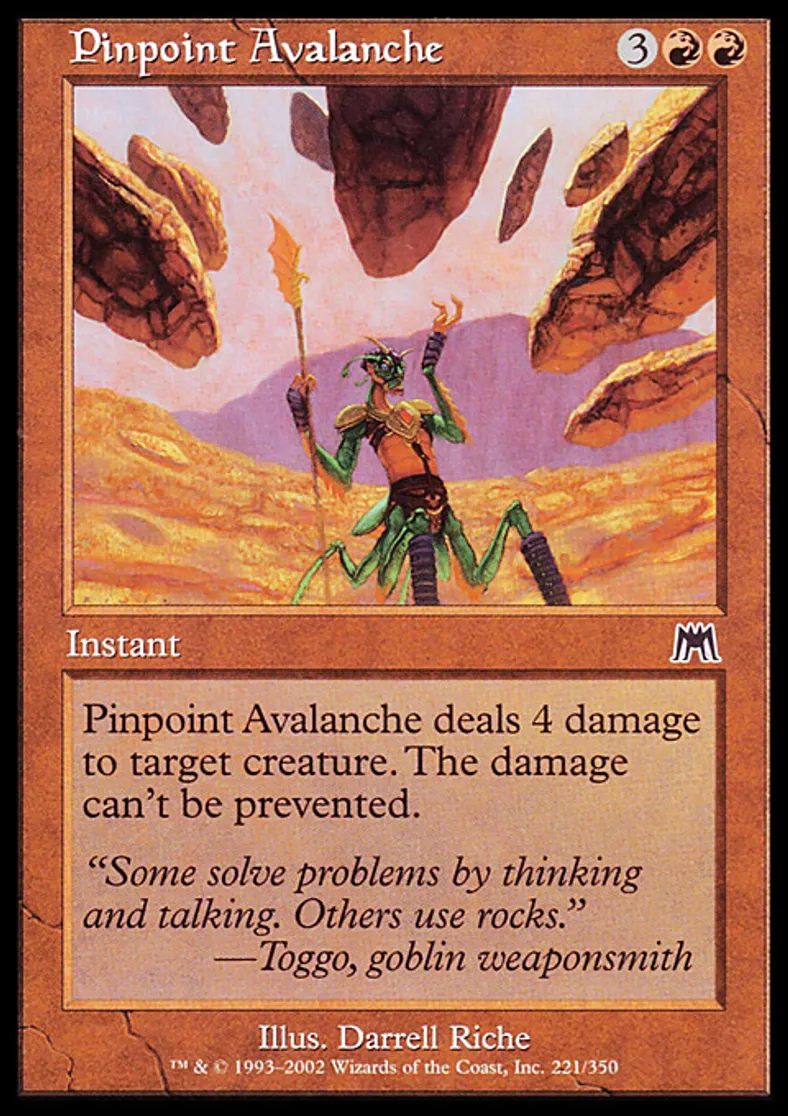 | Oracle Text | Pinpoint Avalanche deals 4 damage to target creature. The damage can't be prevented. | ||