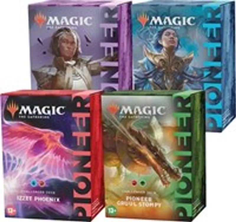 | Flavor Text | A Pioneer Challenger Deck (set of 4) comes with one of each deck. Each deck contains 75-card preconstructed deck. <br>• 60-card deck <br>• 15-card sideboard <br>• 5 double-sided tokens <br>• 1 deck box (holds 75 sleeved cards) | ||