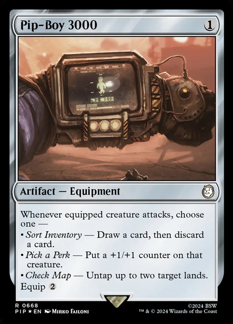 Magic: the Gathering (mtg) rare Artifact — Equipment Pip-Boy 3000 from Universes Beyond: Fallout (pip) last updated 2025-12-17 14:29:06