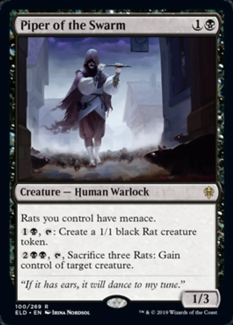 Magic: the Gathering (mtg) Rare Creature — Human Warlock Piper of the Swarm from Throne of Eldraine (ELD) last updated 2026-02-24 16:09:06