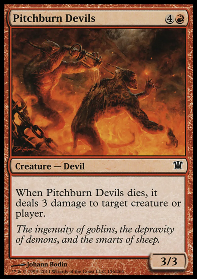 | Oracle Text | When Pitchburn Devils dies, it deals 3 damage to target creature or player. | ||