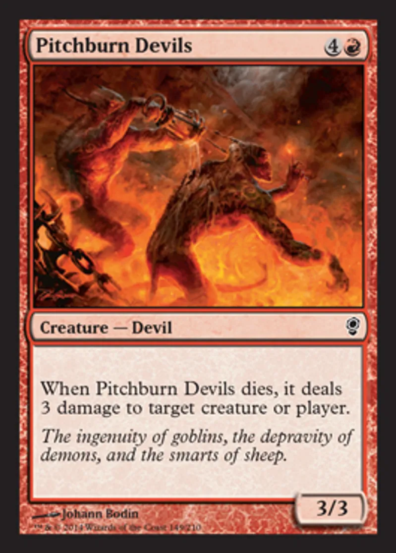 | Oracle Text | When Pitchburn Devils dies, it deals 3 damage to target creature or player. | ||