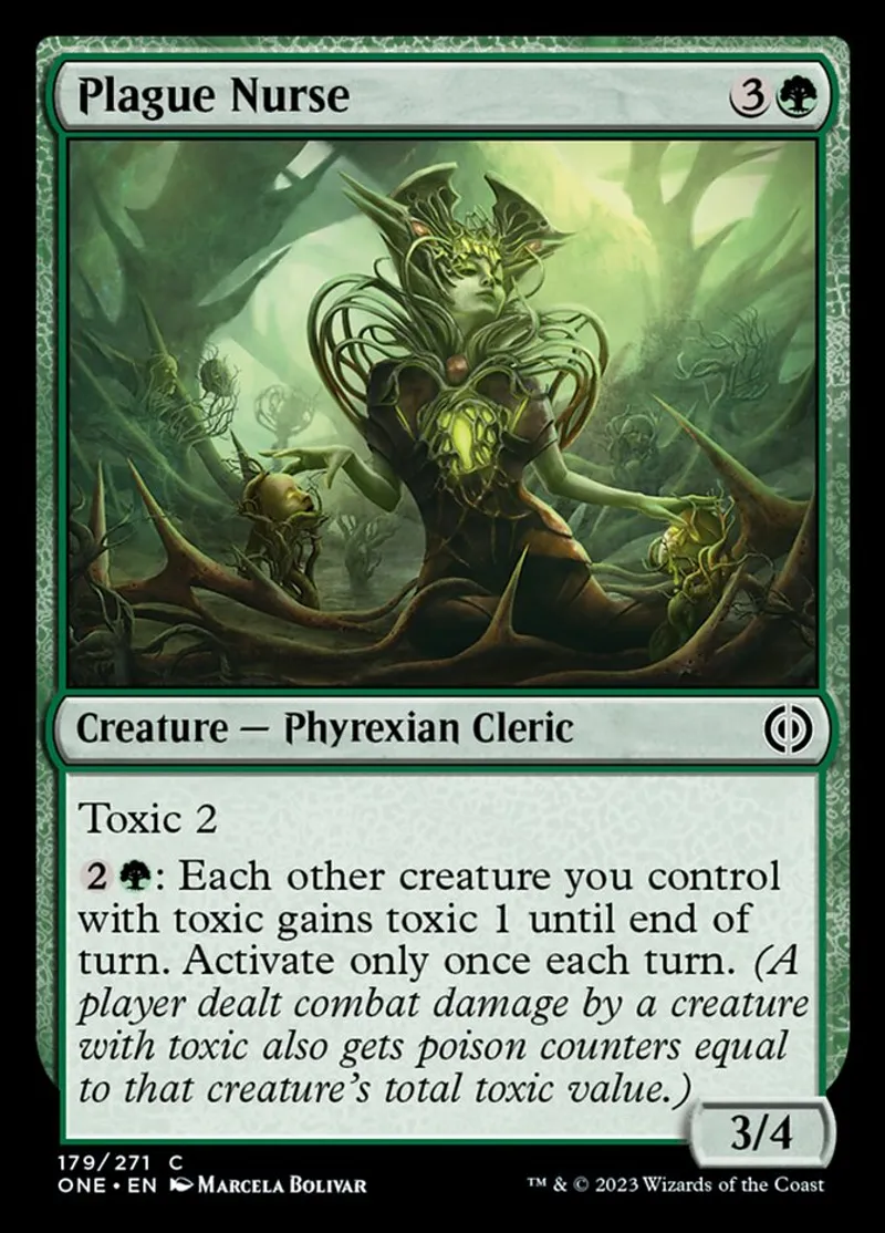 Magic: the Gathering (mtg) common Creature — Phyrexian Cleric Plague Nurse from Phyrexia: All Will Be One (one) last updated 2026-02-21 16:20:32