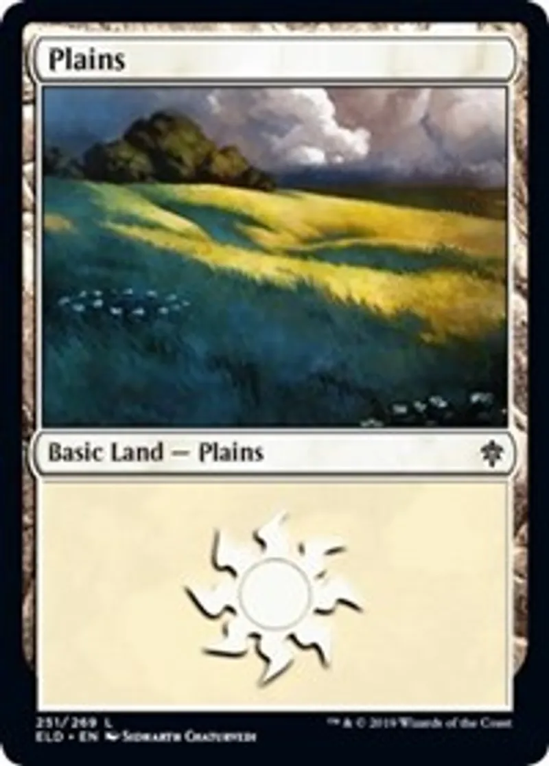 Plains (251) is a Basic Land in the set Throne of Eldraine.