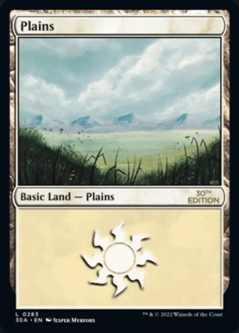 Plains (283) is a Basic Land in the set 30th Anniversary Edition.