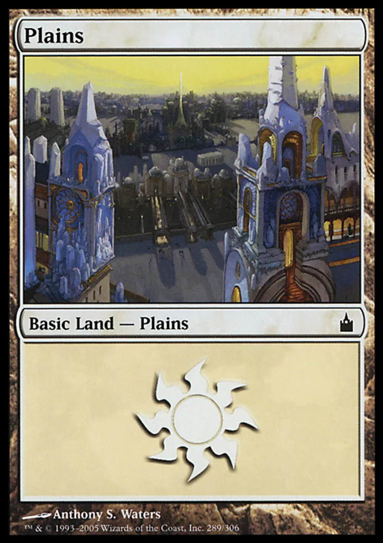 Plains (289) is a Basic Land in the set Ravnica: City of Guilds.