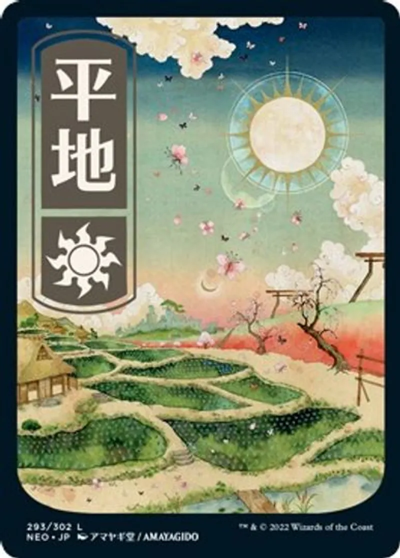 Plains (293) - JP Full Art is a Basic Land in the set Kamigawa: Neon Dynasty.