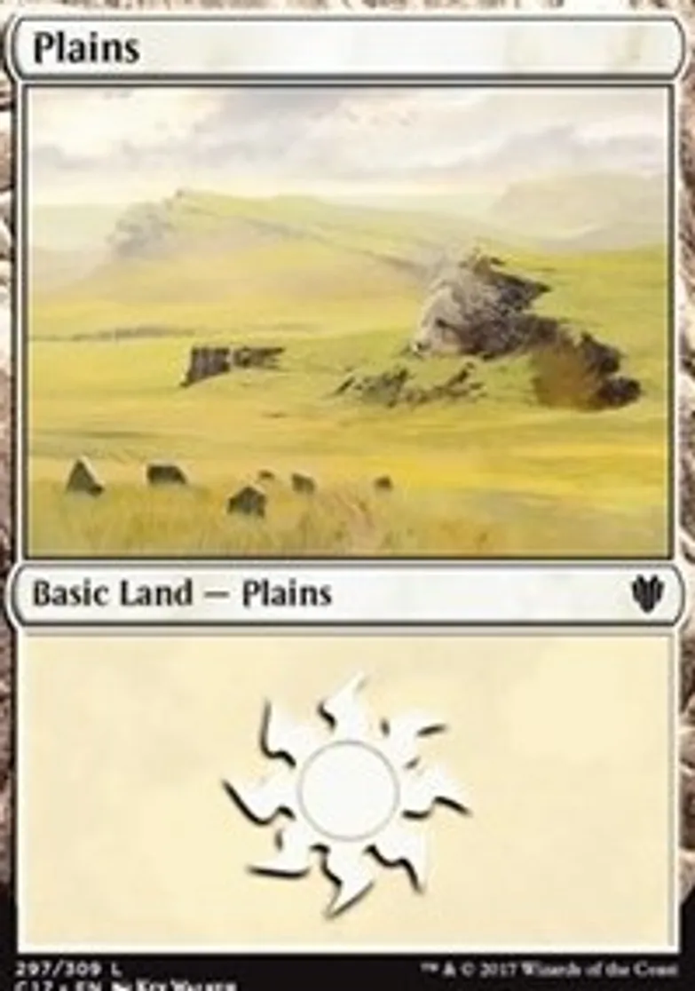 Plains (297) is a Basic Land in the set Commander 2017.
