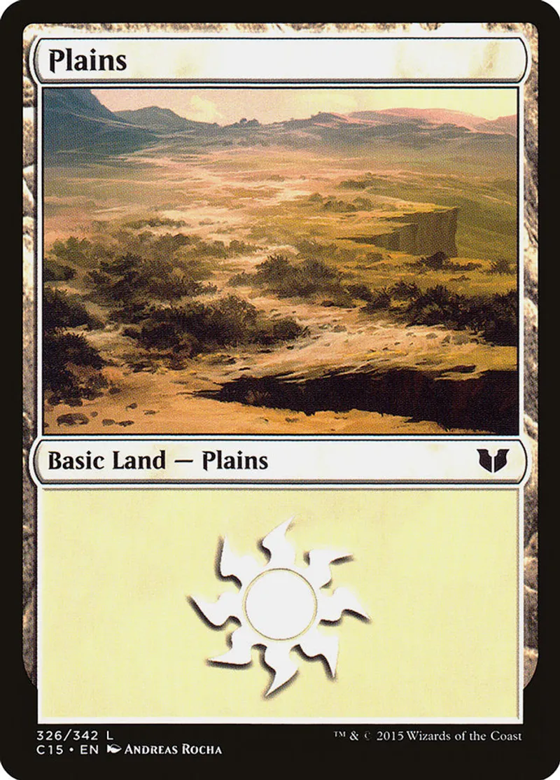 Plains (326) is a Basic Land in the set Commander 2015.