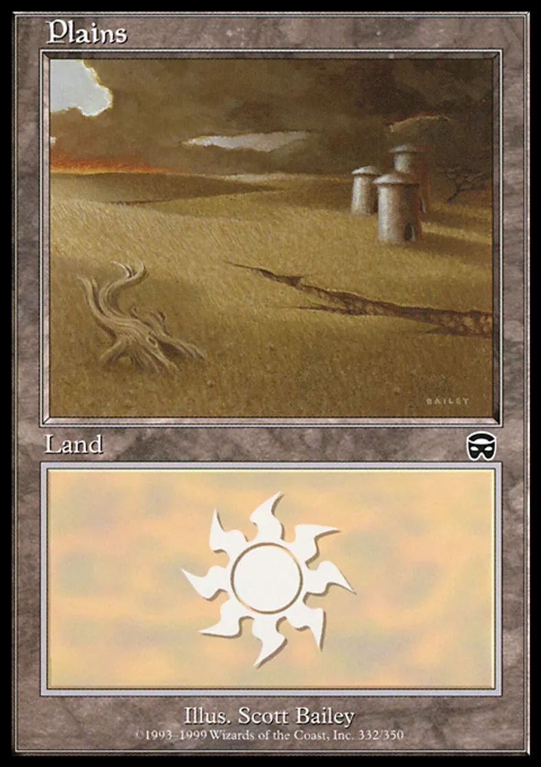 Plains (332) is a Basic Land in the set Mercadian Masques.