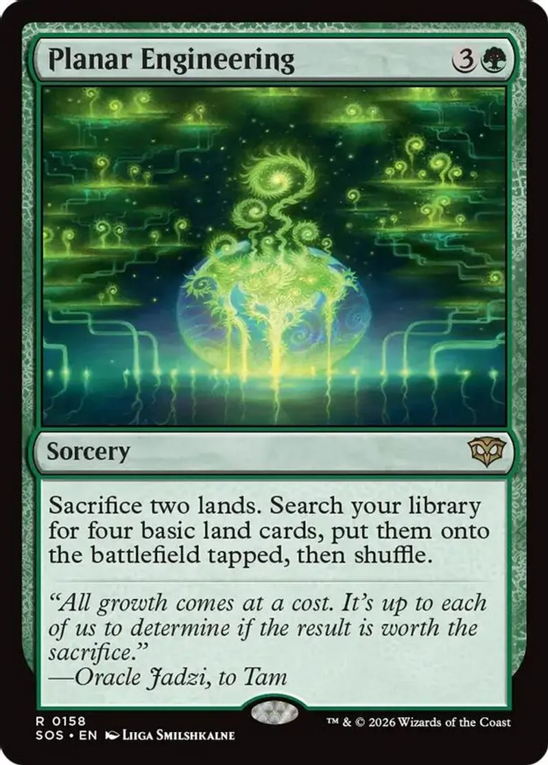 Magic: the Gathering (mtg) Rare sorcery Planar Engineering from Secrets of Strixhaven (SOS) last updated 2026-04-16 23:13:05
