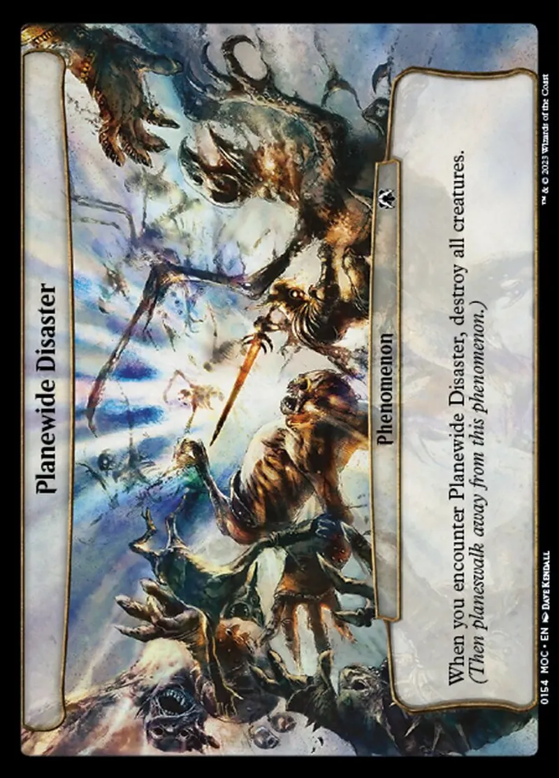 | Oracle Text | When you encounter Planewide Disaster, destroy all creatures. (Then planeswalk away from this phenomenon.) | ||