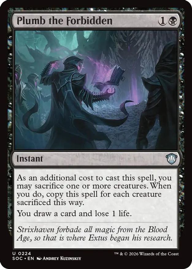 Magic: the Gathering (mtg) Uncommon instant Plumb the Forbidden from Commander: Secrets of Strixhaven (SOC) last updated 2026-04-17 00:24:10