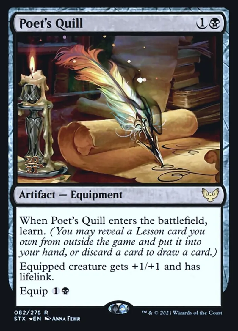 | Oracle Text | When Poet’s Quill enters the battlefield, learn. (You may reveal a Lesson card you own from outside the game and put it into your hand, or discard a card to draw a card.)