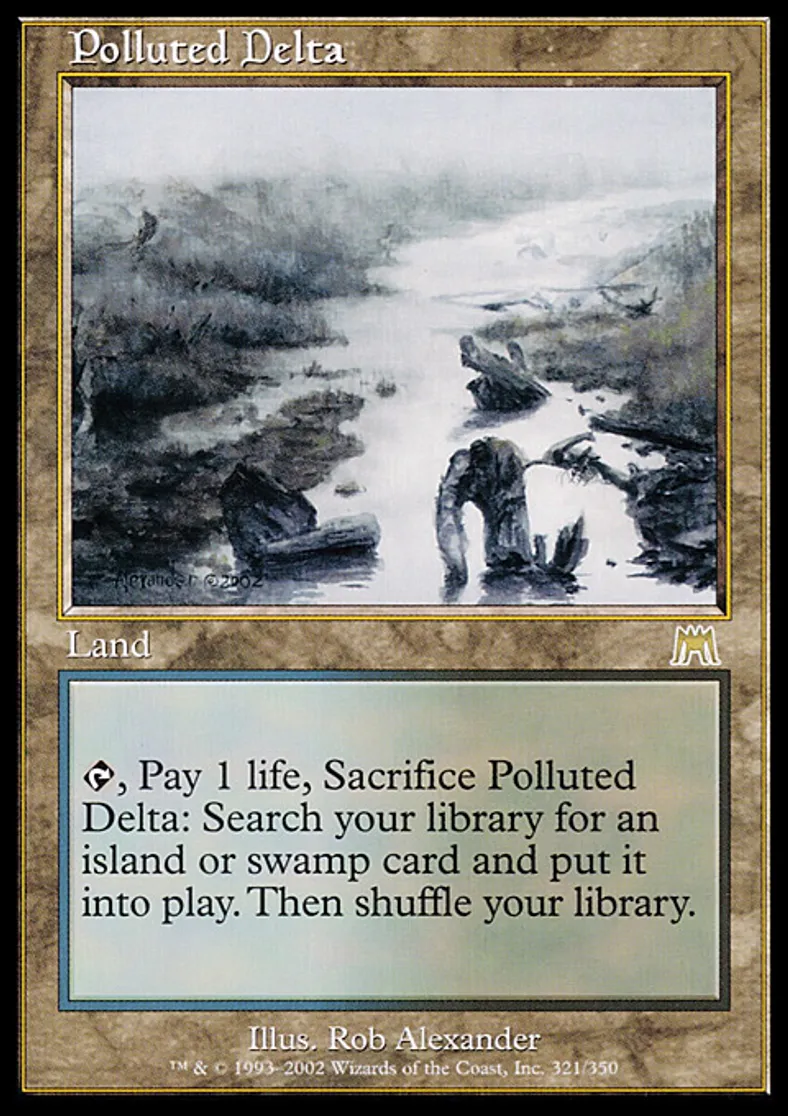 | Oracle Text | {{t}}, Pay 1 life, Sacrifice Polluted Delta: Search your library for an Island or Swamp card and put it onto the battlefield. Then shuffle your library. | ||