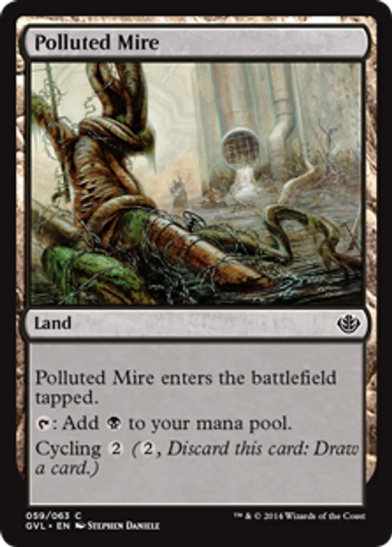 | Oracle Text | Polluted Mire enters the battlefield tapped. {{t}}: Add {{b}} to your mana pool. Cycling {{2}} ({{2}}, Discard this card: Draw a card.) | ||