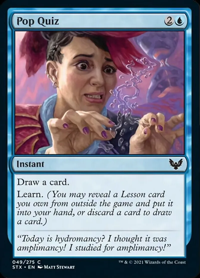 Pop Quiz is a common in the set Strixhaven: School of Mages.