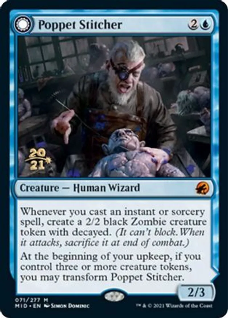 Magic: the Gathering (mtg) Mythic Rare Creature — Human Wizard Poppet Stitcher from Prerelease Cards (pPRE) last updated 2026-03-22 15:45:42
