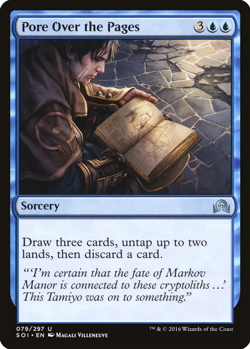 Magic: the Gathering (mtg) Uncommon Sorcery Pore Over the Pages from Shadows over Innistrad (SOI) last updated 2026-02-21 17:24:02