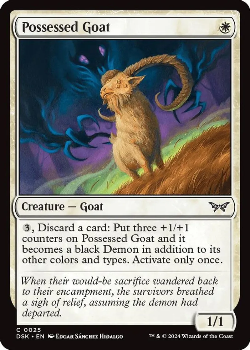Possessed Goat is a Common in the set Duskmourn: House of Horror.