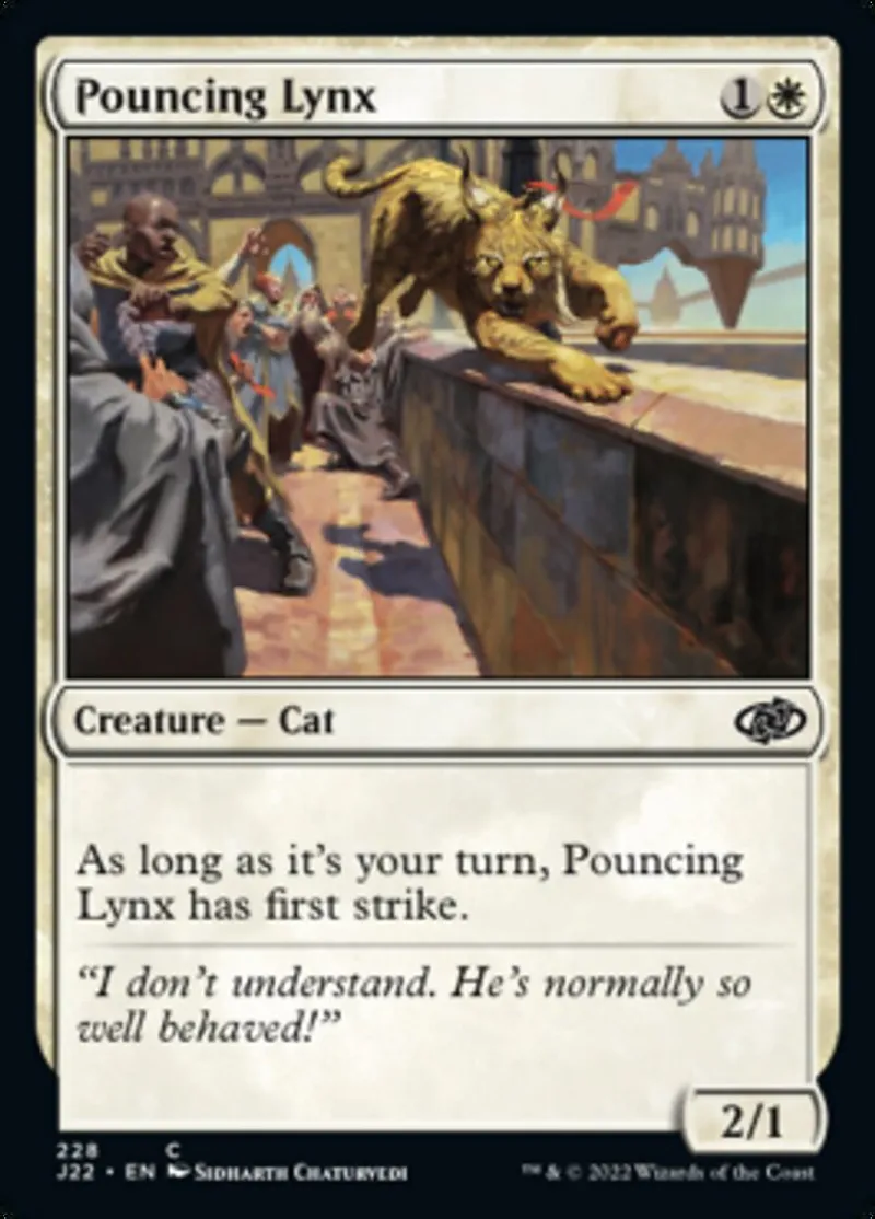 Magic: the Gathering (mtg) common Creature — Cat Pouncing Lynx from Jumpstart 2022 (j22) last updated 2026-02-21 16:17:02