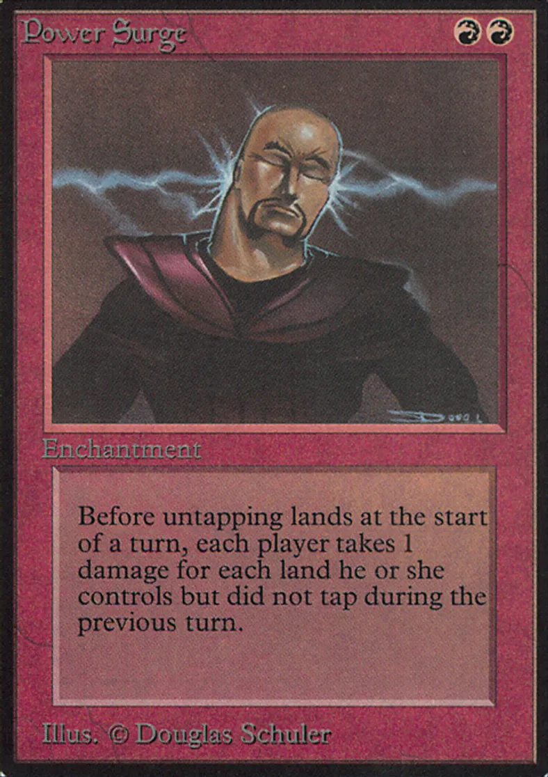 | Oracle Text | At the beginning of each player's upkeep, Power Surge deals X damage to that player, where X is the number of untapped lands he or she controlled at the beginning of this turn. | ||