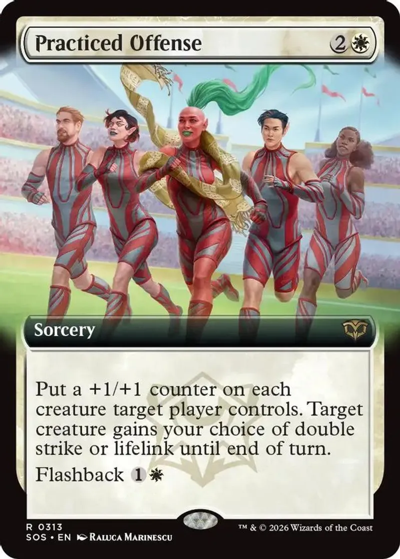 Practiced Offense (Extended Art) is a Rare in the set Secrets of Strixhaven.