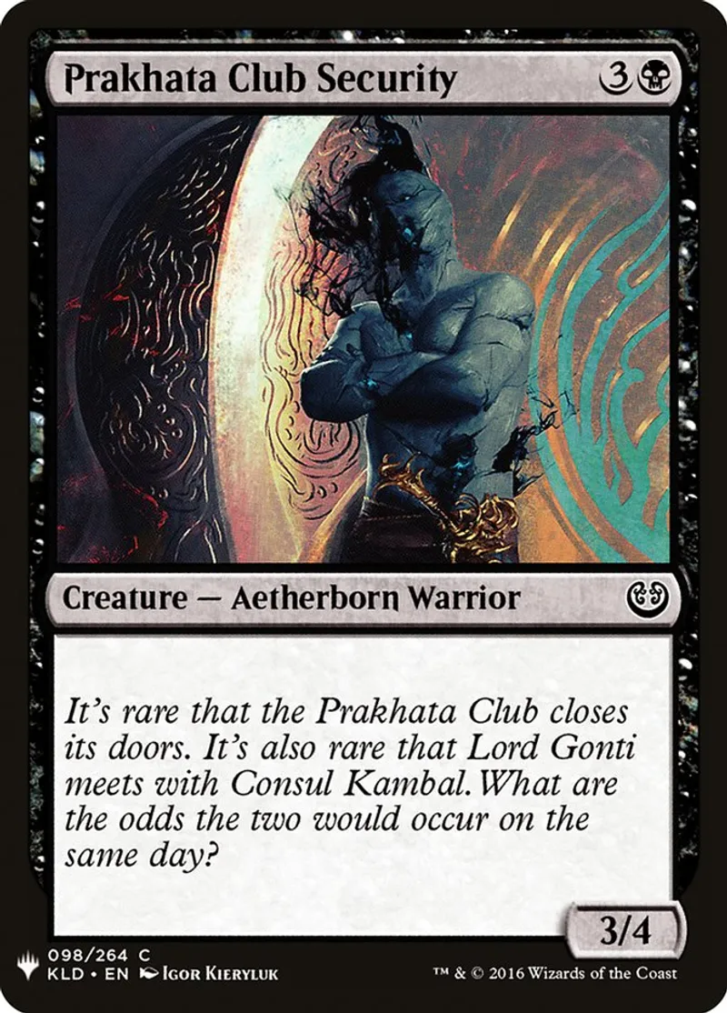 | Flavor Text | It's rare that the Prakhata Club closes its doors. It's also rare that Lord Gonti meets with Consul Kambal. What are the odds the two would occur on the same day? | ||