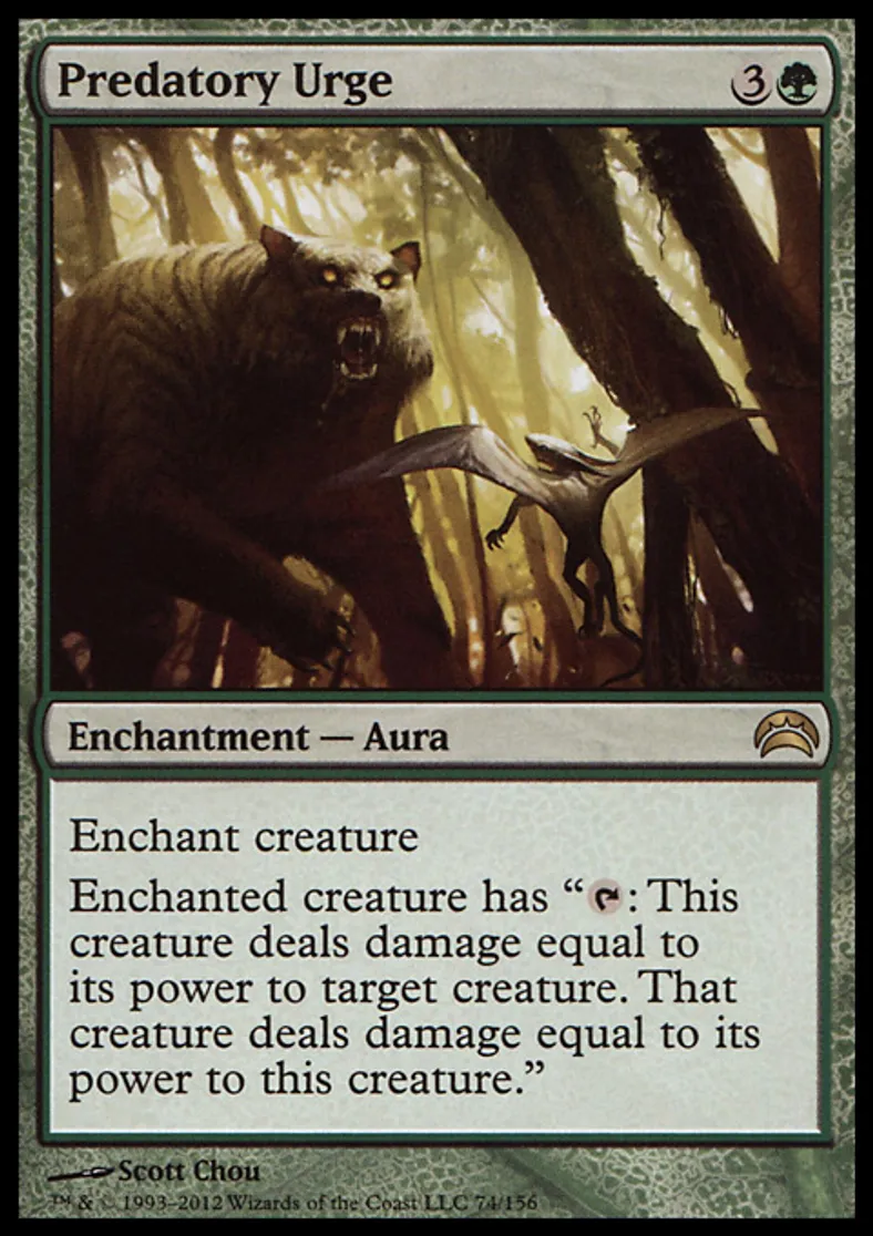 Magic: the Gathering (mtg) Rare Enchantment - Aura Predatory Urge from Planechase 2012 Edition (PC2) last updated 2026-02-21 17:11:02