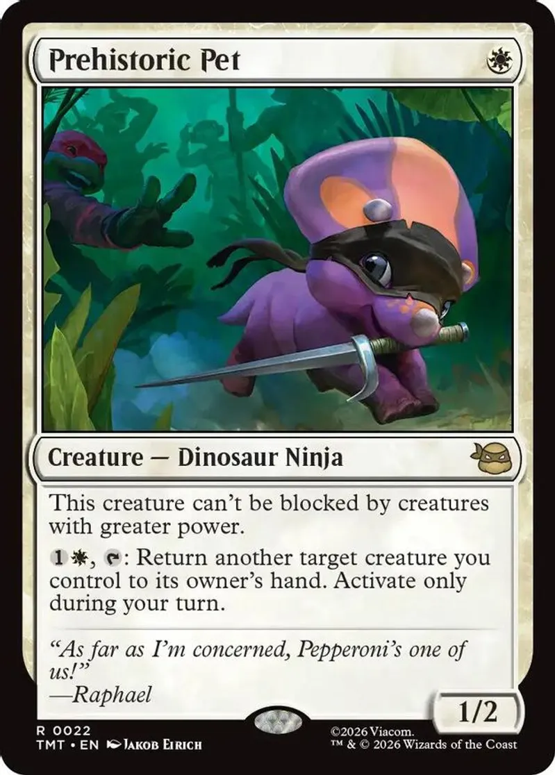 Magic: the Gathering (mtg) Rare creature — dinosaur ninja Prehistoric Pet from Teenage Mutant Ninja Turtles (TMT) last updated 2026-02-24 14:53:02