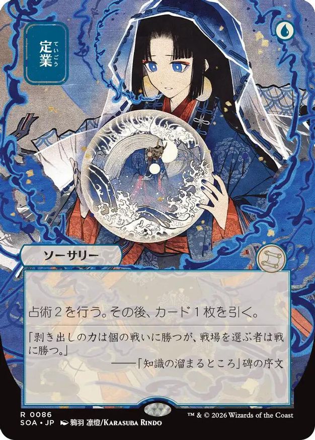 Preordain (JP Alternate Art) is a Rare in the set Secrets of Strixhaven: Mystical Archive.