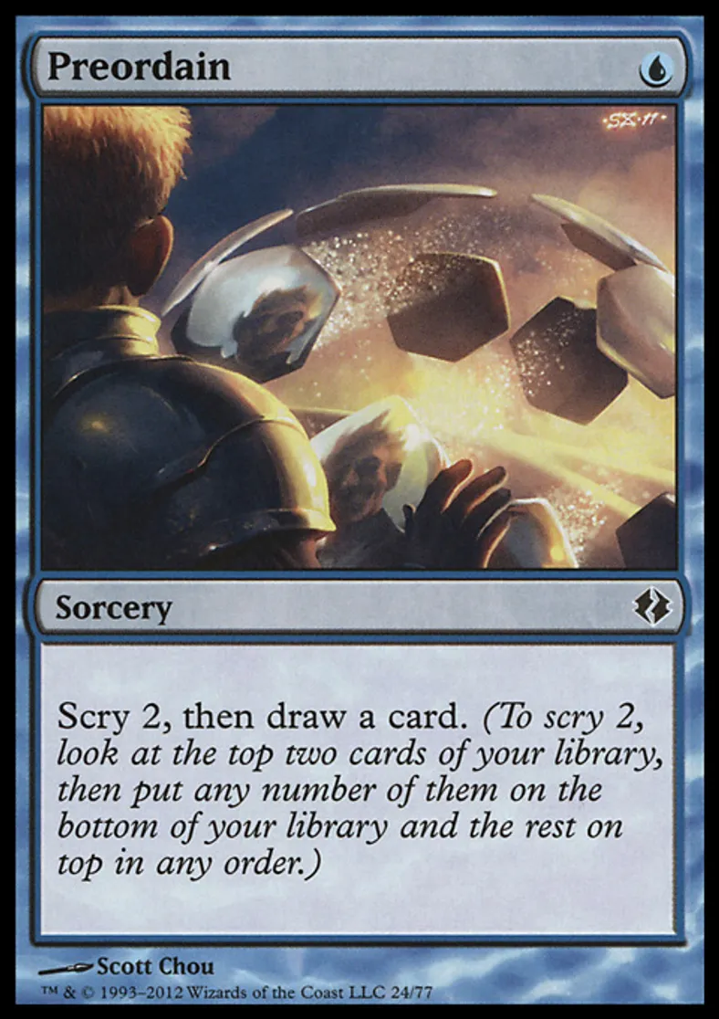 Preordain is a Common in the set Duel Decks: Venser vs. Koth.