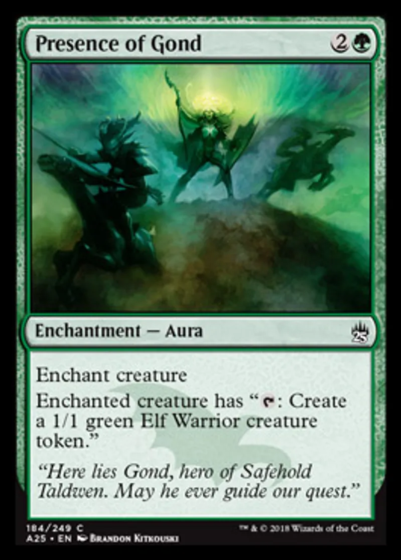 Magic: the Gathering (mtg) Common Enchantment - Aura Presence of Gond from Masters 25 (A25) last updated 2026-02-24 16:05:33