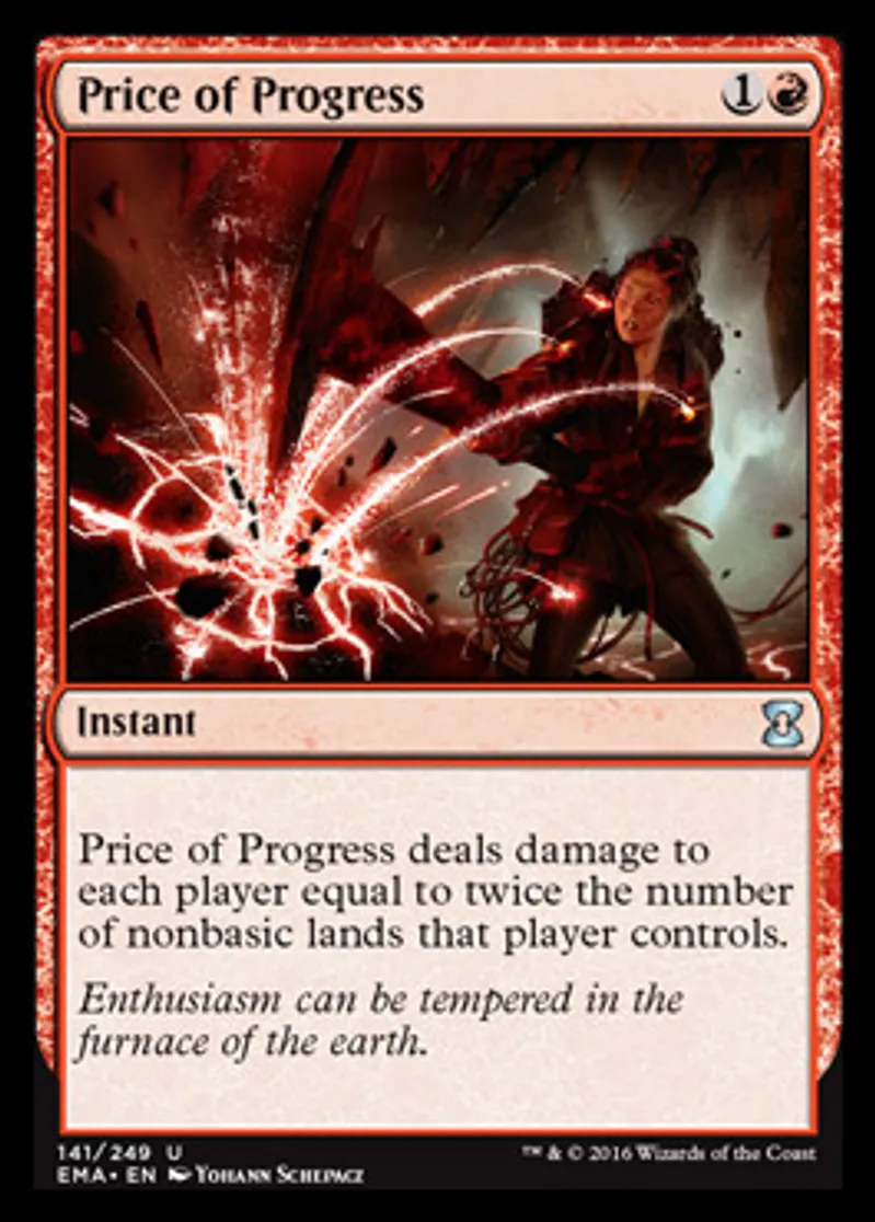 | Oracle Text | Price of Progress deals damage to each player equal to twice the number of nonbasic lands that player controls. | ||