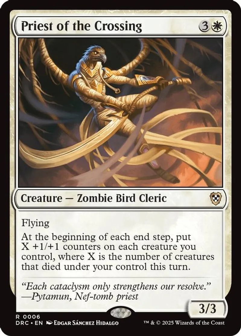 Magic: the Gathering (mtg) Rare creature — zombie bird cleric Priest of the Crossing from Commander: Aetherdrift (DRC) last updated 2025-12-13 15:36:32