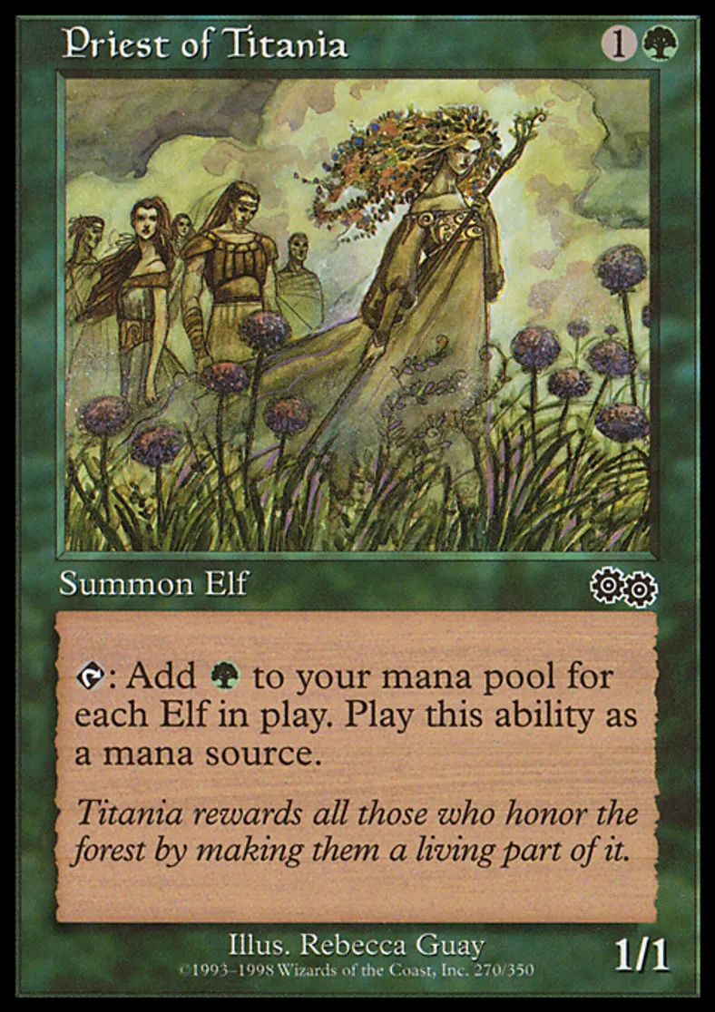 Magic: the Gathering (mtg) Common Creature - Elf Druid Priest of Titania from Urza's Saga (USG) last updated 2026-02-25 15:07:07