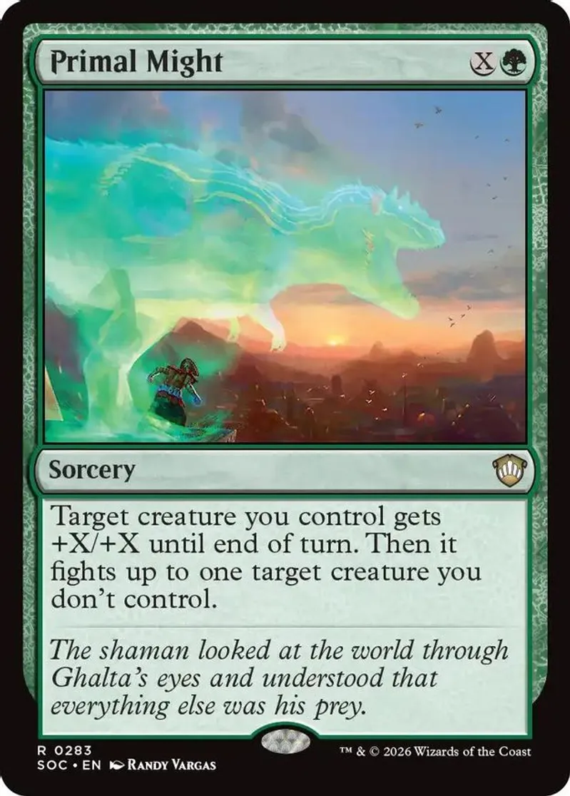 Magic: the Gathering (mtg) Rare sorcery Primal Might from Commander: Secrets of Strixhaven (SOC) last updated 2026-04-17 00:26:10