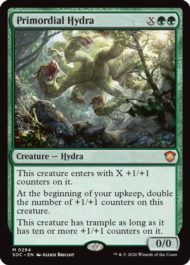 Primordial Hydra is a Mythic Rare in the set Commander: Secrets of Strixhaven.
