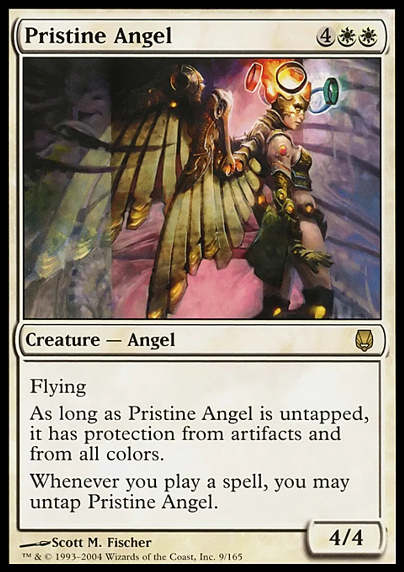 | Oracle Text | Flying As long as Pristine Angel is untapped, it has protection from artifacts and from all colors. Whenever you cast a spell, you may untap Pristine Angel. | ||