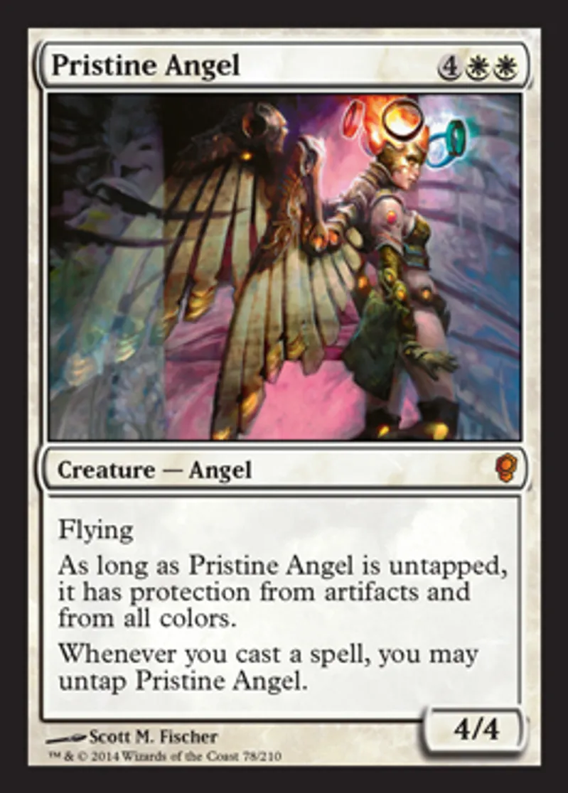 | Oracle Text | Flying As long as Pristine Angel is untapped, it has protection from artifacts and from all colors. Whenever you cast a spell, you may untap Pristine Angel. | ||