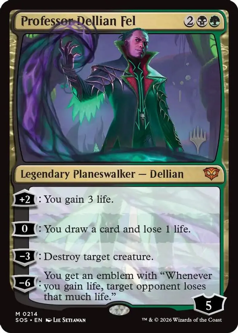 Magic: the Gathering (mtg) Mythic Rare legendary planeswalker — dellian Professor Dellian Fel from Promo Pack: Secrets of Strixhaven (PPSOS) last updated 2026-04-20 14:19:09