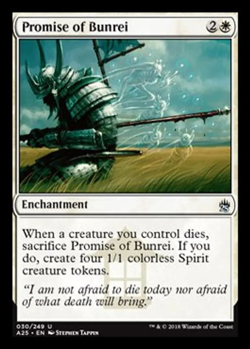 Magic: the Gathering (mtg) Uncommon Enchantment Promise of Bunrei from Masters 25 (A25) last updated 2026-02-21 16:50:36