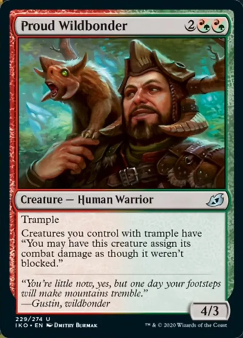 Magic: the Gathering (mtg) Uncommon Creature — Human Warrior Proud Wildbonder from Ikoria: Lair of Behemoths (IKO) last updated 2026-02-21 16:24:32