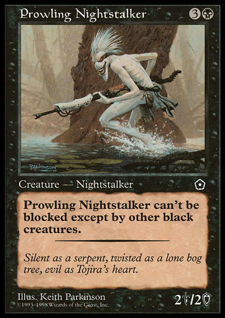 | Oracle Text | Prowling Nightstalker can't be blocked except by black creatures. | ||