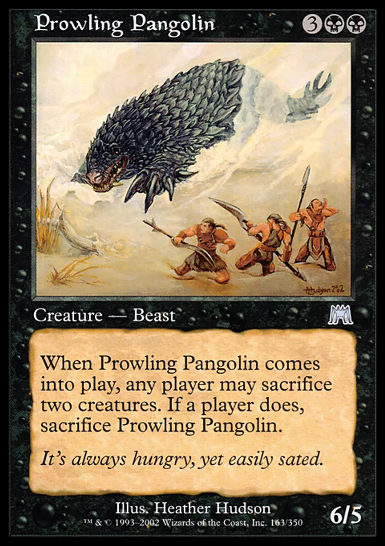 | Oracle Text | When Prowling Pangolin enters the battlefield, any player may sacrifice two creatures. If a player does, sacrifice Prowling Pangolin. | ||