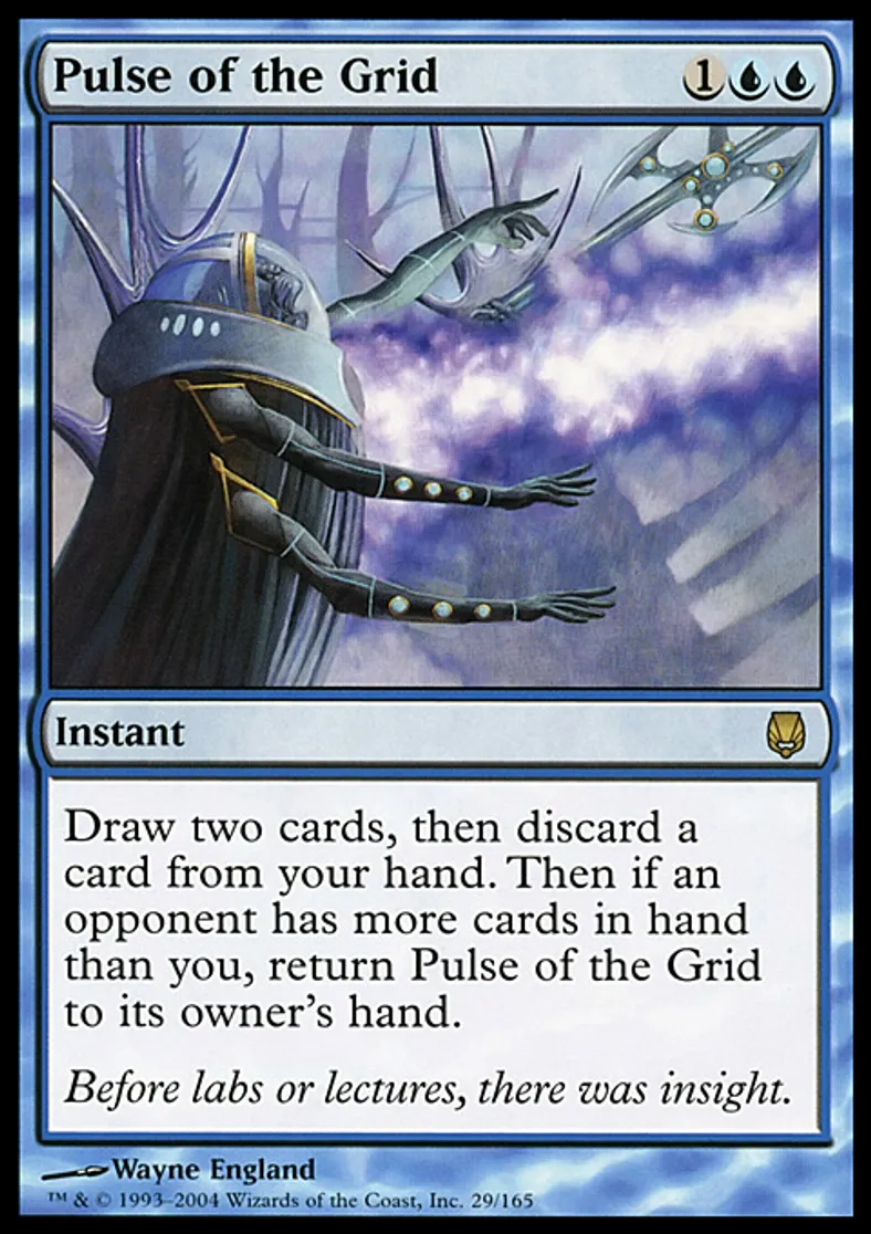 | Oracle Text | Draw two cards, then discard a card. Then if an opponent has more cards in hand than you, return Pulse of the Grid to its owner's hand. | ||