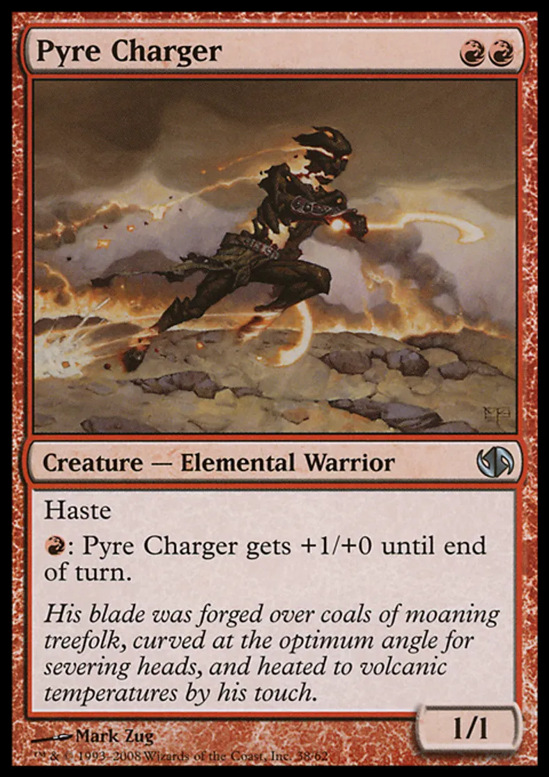 Magic: the Gathering (mtg) Uncommon Creature - Elemental Warrior Pyre Charger from Duel Decks: Jace vs. Chandra (DD2) last updated 2026-02-21 17:47:37